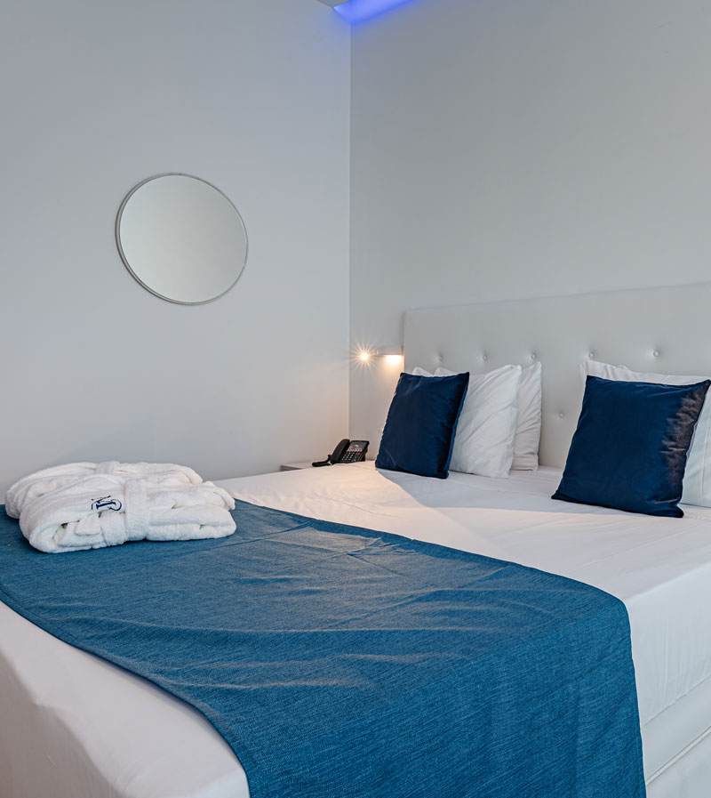 Τα ξενοδοχείων είναι τα Mirage Bleu, Magique Bleu Suites, Mer Bleu Beach Hotel & Mythique Blue.
